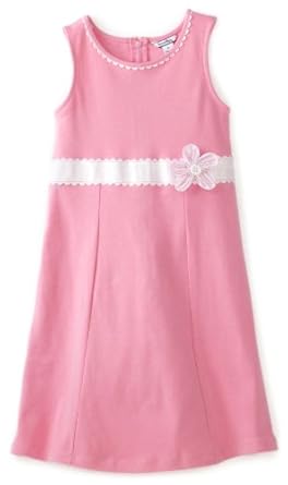 Girls cotton interlock sleeveless dress, grosgrain ribbon at waistline, rick rack trim details, mini check accent flower, back zip,