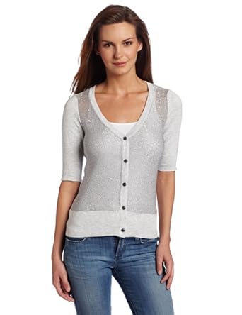 Minnie Rose Women's Sequin Front 3/4 Sleeve Cardigan Sweater